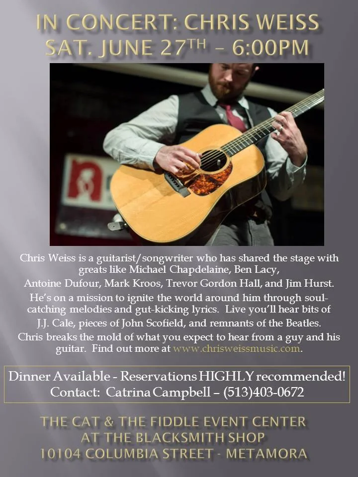 ✚ gCal ✚ iCal My day of fantasticalness will end with a concert at the Cat& the Fiddle Event Center! Stick around after the Workshop or come on out after work for the show!